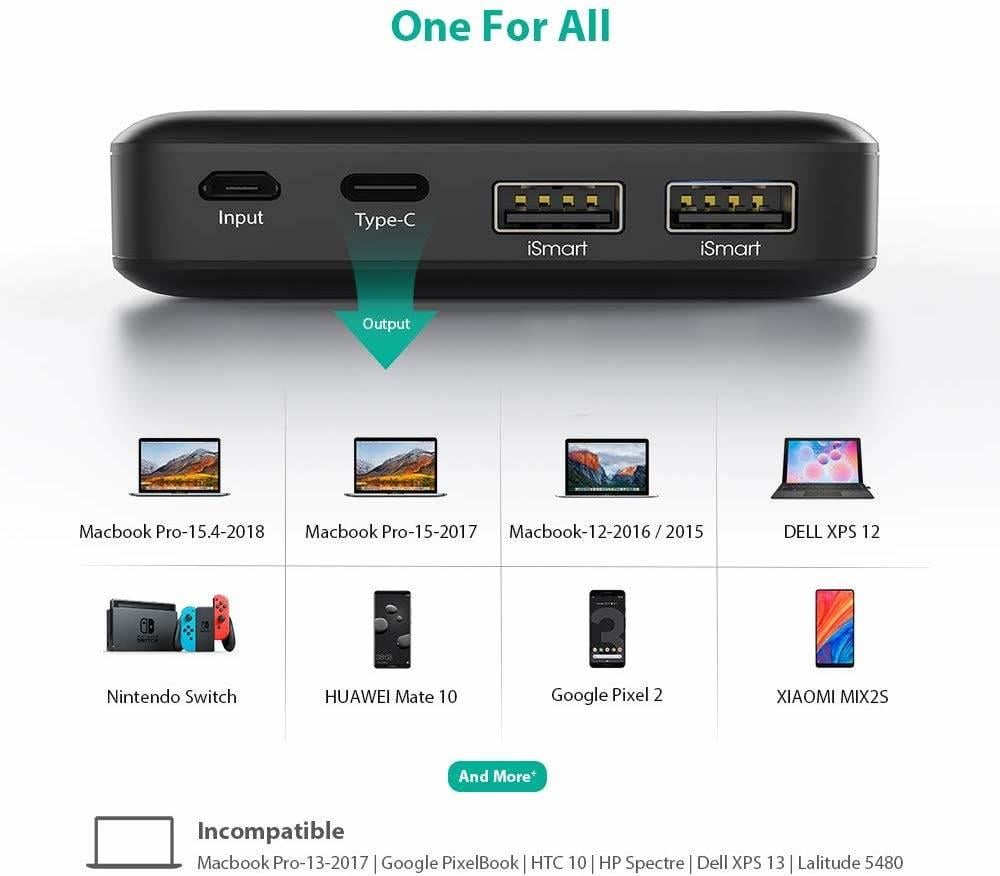 يأتي أيضًا بمدخلين يو اس بي لأسلاك الشحن والتي تتناسب مع جميع أنواع الأسلاك لمختلف الأجهزة اللوحية والجوالات، وبتقنية iSmart التي تتعرف على نوع جهازك الذكي وتشحنه وفقا لبطاريته الخاصة والتي تحمي من درجات الحرارة العالية، الشحن الزائد أو الالتماس.