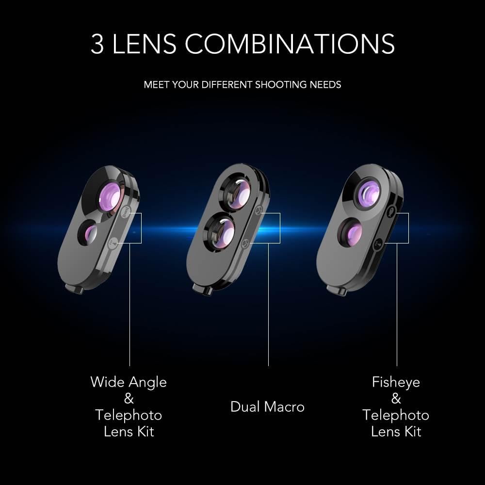 العدسات: Wide Angle + Telephoto Lens Kit - Dual Macro Fisheye +Telephoto Lens Kit